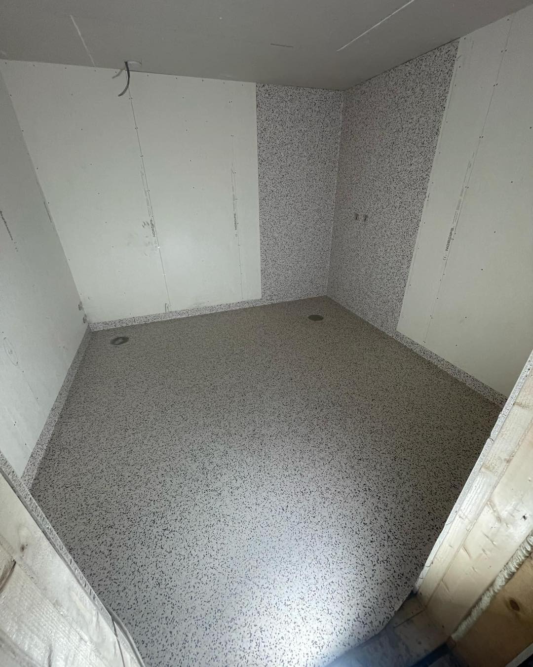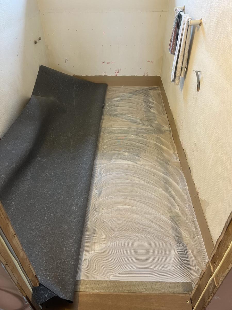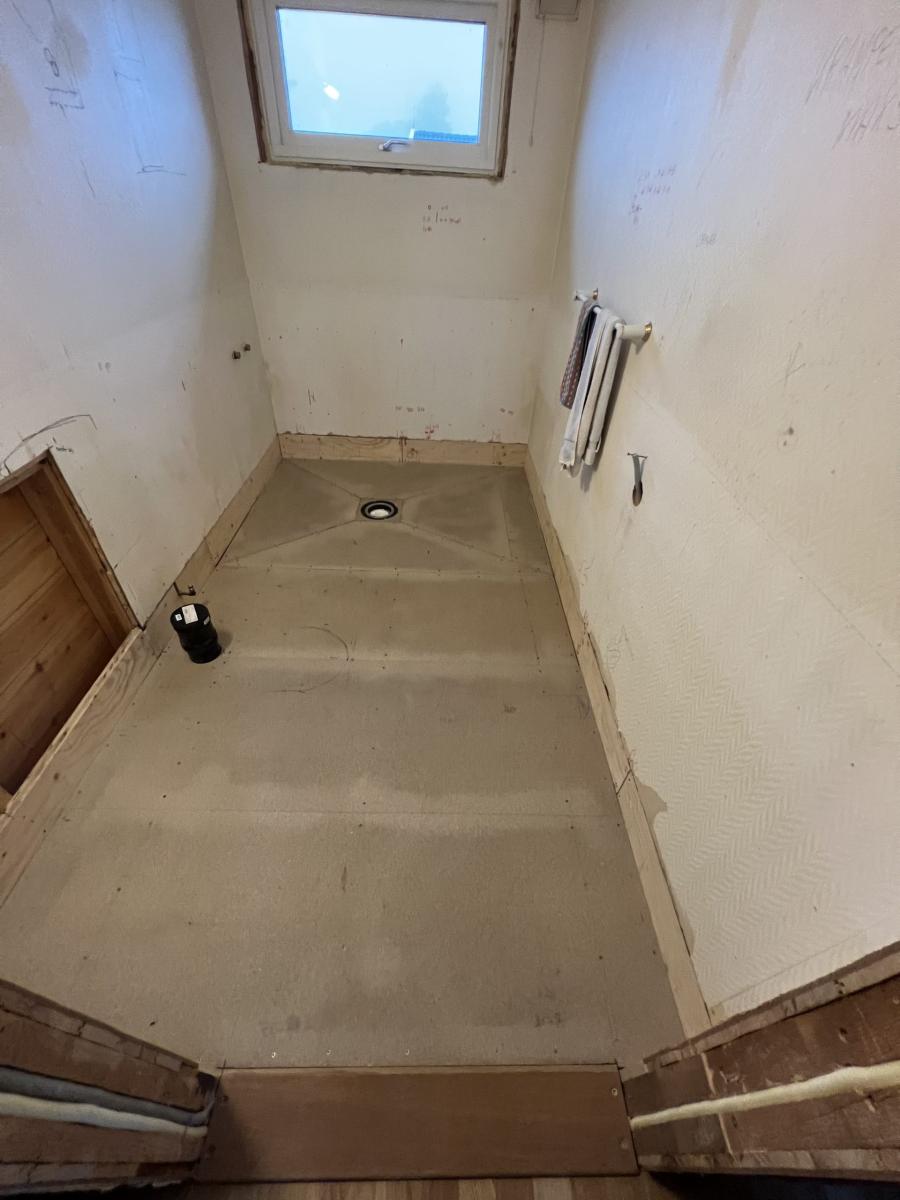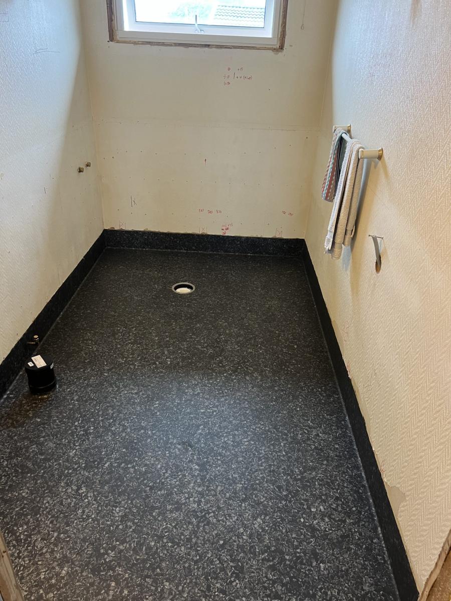 - Legging av våtromsbelegg i gulv og opp på vegg